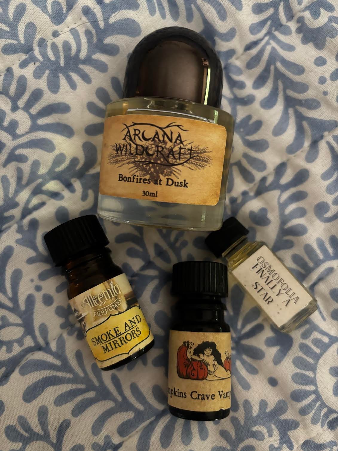 And RELIQUARY, my horror debut that comes out next year, is Pumpkins Crave Vampire Squid by Arcana. I don’t really know how to describe the way this one smells, because on paper it doesn’t make sense—pumpkins and spice the likes of which you’d find in an autumn candle, somehow perfectly twined with saltwater and ink. It’s a heavy holiday feast next to a dark ocean, comfort with a foreboding edge.